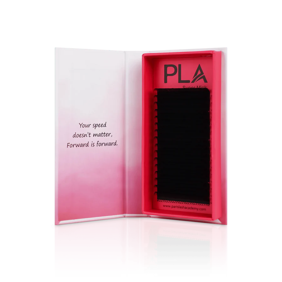 All PLA lashes are made from top quality Korean PBT. They are micro laser cut to make the lashes even lighter weight. Super mink lashes are very light weight, with a hint of matte.